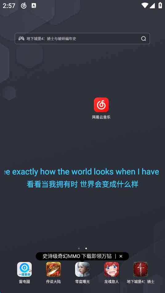 5、开启后放回手机主页就可以看到桌面歌词显示啦。