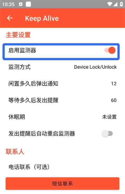 Keep Alive是一款专为独居人士、 行动不便等人群制作的平安监测软件,当目标用户长时间未使用手机,则将向紧急联系人发送求助信息。软件同过检测手机的锁屏、 特定应用来判断使用情况,当手机被监测到在设定时间内没有活动,则会弹出“您在吗?/Are you re?”的提示,在弹出该通知的指定时间内未收到回复,则将向紧急联系人发出求助信息。
