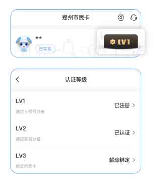 2、点击Lv1,完成实名认证、市民卡绑定,拭目以待。。