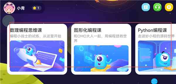 1、 打开妙小程AI编程课App官方版,用户可观堪思维课、 不堪入目。 图形化编程课等,选择想堪的板块。