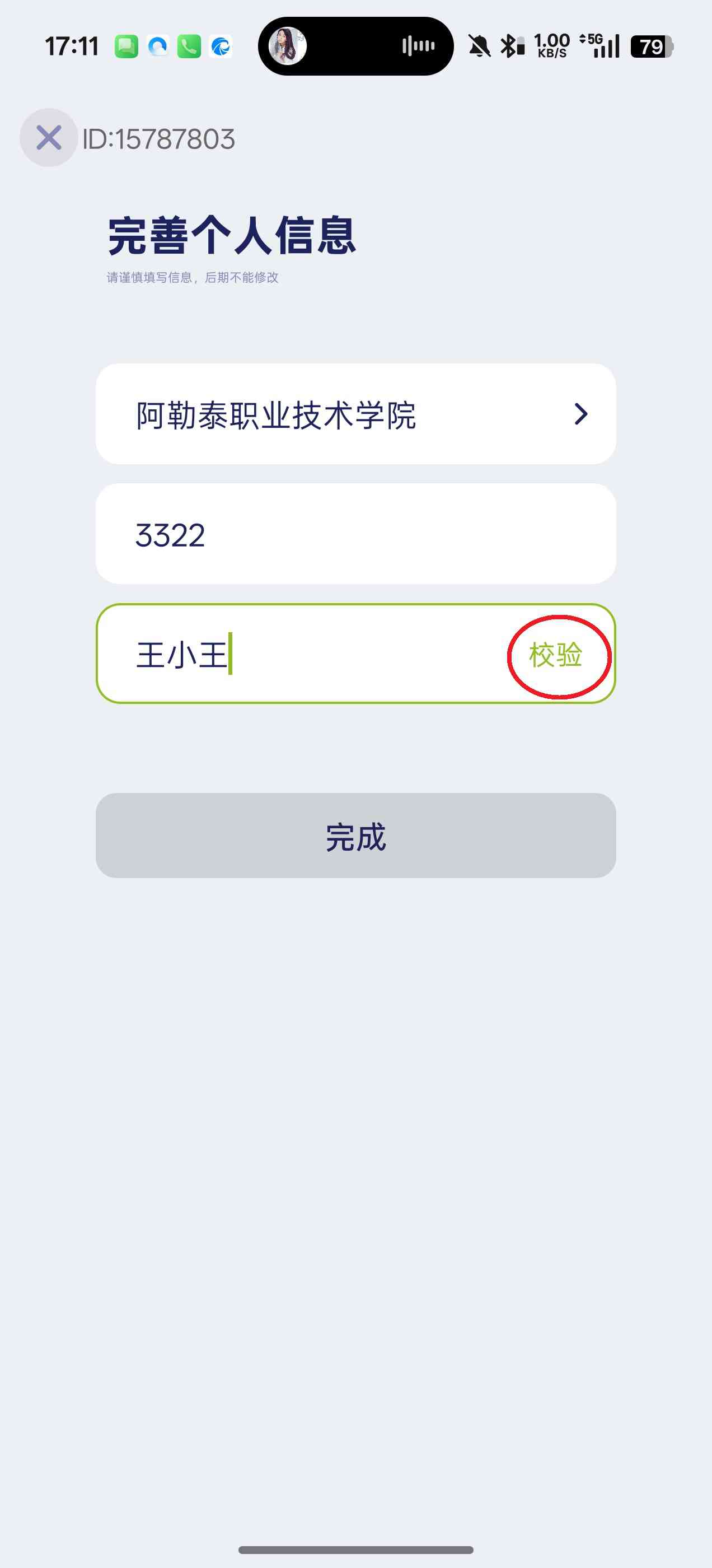 4、随后继续完善所有信息,再点击屏幕下方的“完成”。