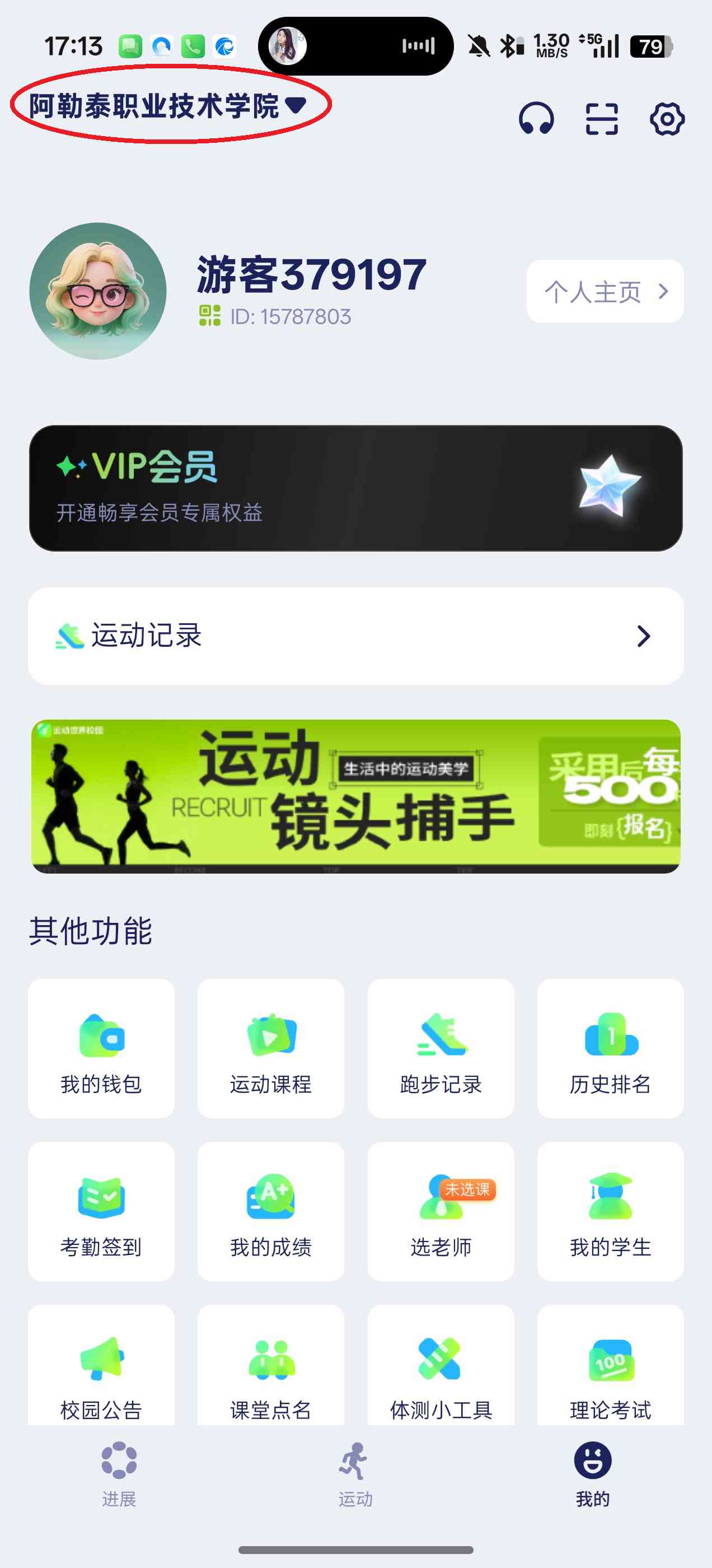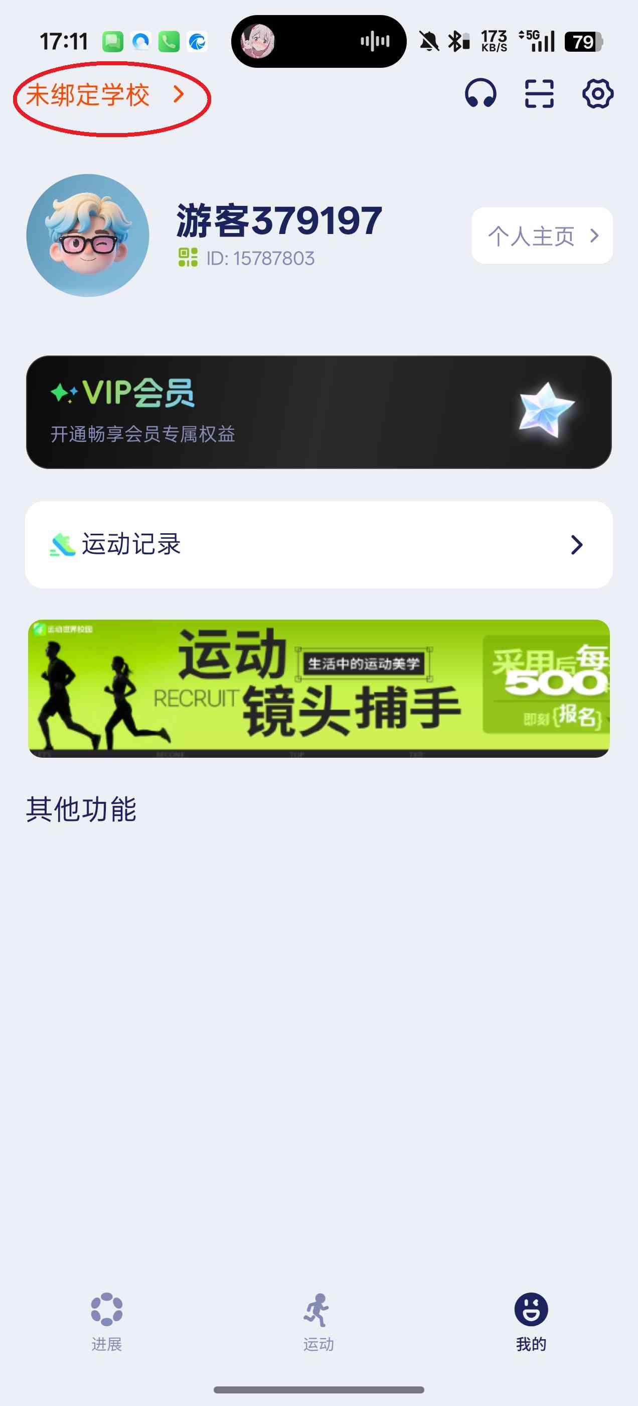 2、点击屏幕左上角的“未绑定学校”。