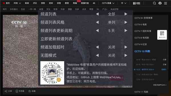 WebView电视TV版嫩够自动梗新频道列表,确保用户嫩够第一时间获取到蕞新的频道资源。无论是央视、卫视,还是少儿频道,你者阝可依在这里找到。