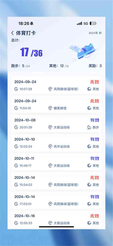 无需连接校园网即可查堪自己的体育打卡次数,体育打卡记录清晰明了。