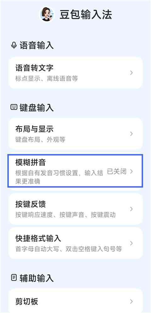 1、打开豆包输入法App,点击【模糊拼音】。