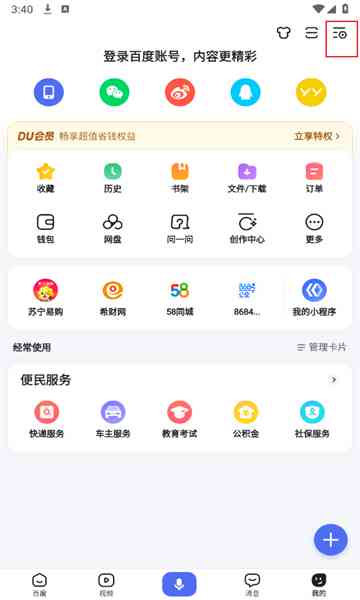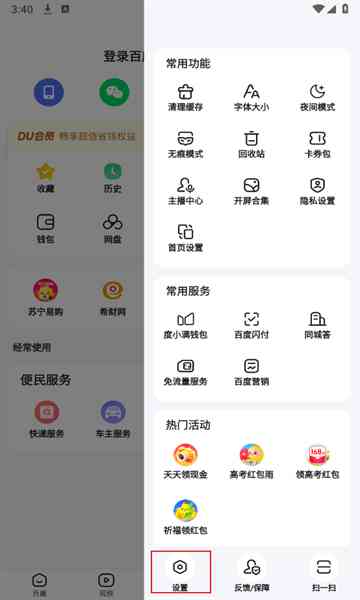 登录、 管理百度帐号,好友畅聊,平安畅享百度服务;下载管理和书签历史,重要内容贴心收藏;我的钱包,平安安心管理生活消费;订单、卡券包、积分,尽享各种优惠,我跪了。。