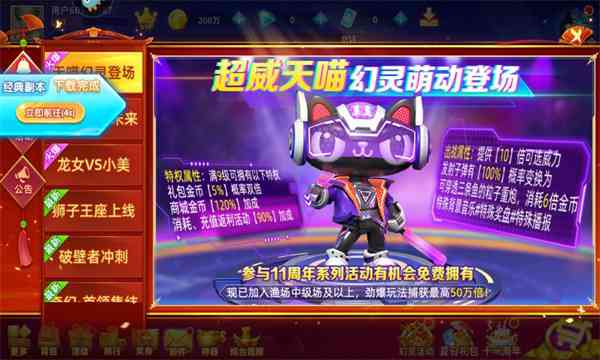 2、经典捕鱼,千炮金币爆不停。