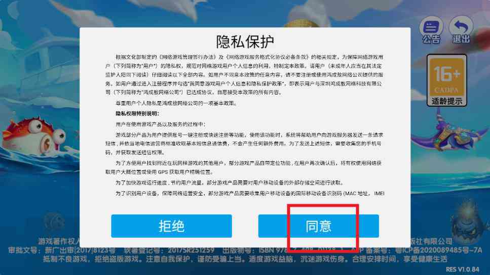 弹出隐私政策界面点击同意