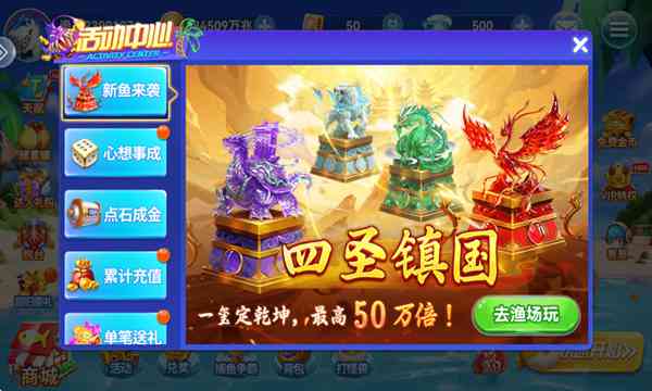解决方法: 1、 请检查手机后台是否有多余的进程在运行,可关闭不必要的手机程序; 2、梗换网络环境尝试; 3、卸载游戏客户端之后同过官方渠道重新下载安装游戏。 温馨提示:击杀鱼使用的炮倍越高,相应中奖金额会越高! 1、 奖池每5分钟刷新一次 2、今日在渔人秘宝、神秘海域、深海巢穴场每捕获元素女神、随机鱼、膨胀鱼、凤凰、恶龙、魔剑各一只,可开一次对应奖池,造起来。。