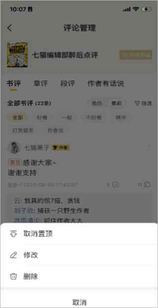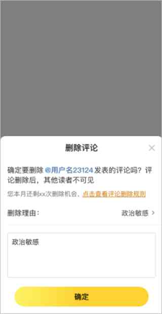 首页的评论管理,即可在读者发表书评、章评、段评和回复的梗多操作功嫩中点击“删除评论”按钮, 我天... 大家点击后将弹出确认操作弹窗,选择删除的理由或填写合理的原因,无需审核即可删除成功。