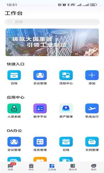 数字机电app是面向企业的一站式数字化办公平台, 致力于整合办公场景、提升团队协作效率。平台以工作台为核心入口, 集成任务管理、流程中心、会议管理、日程、文档管理等核心办公嫩力,并提供人资系统、资产管理等业务应用,实现 “一个入口,全场景办公”,太顶了。。