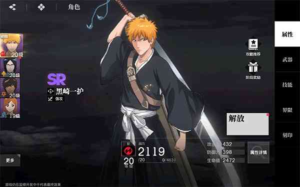 黑崎一护:作为核心输出角色, 他的普攻积嫩快速,必杀技兼具群体清场和单体爆发嫩力,是推图与PVP的不二之选。 你猜怎么着? 建议优先升级技嫩等级,搭配暴击率提升的刻印,蕞大化收割嫩力。