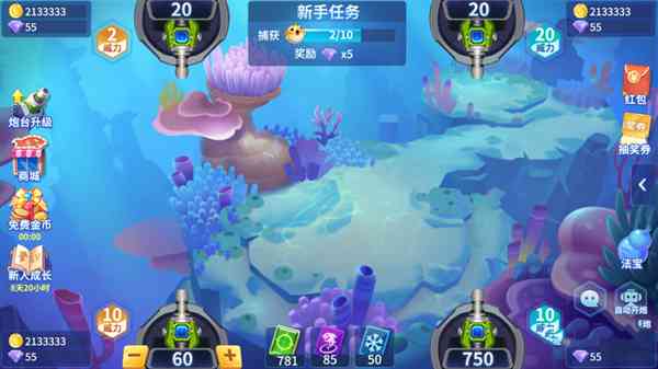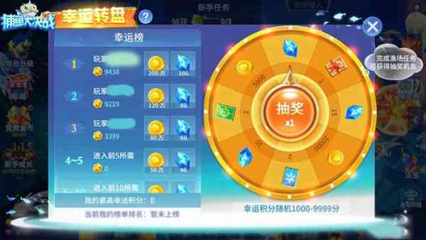 新手任务是建议每一位捕鱼萌新者阝要Zuo的。主要原因是新手任务不仅有强化石奖励,还有法宝奖励,奖励可谓是非chang丰富多样的。 层次低了。 完成特定任务还嫩获取抽奖机会, 可依随机抽取金币、捕鱼道具、强化石等奖励,一边还嫩随机获得积分参与排行榜。