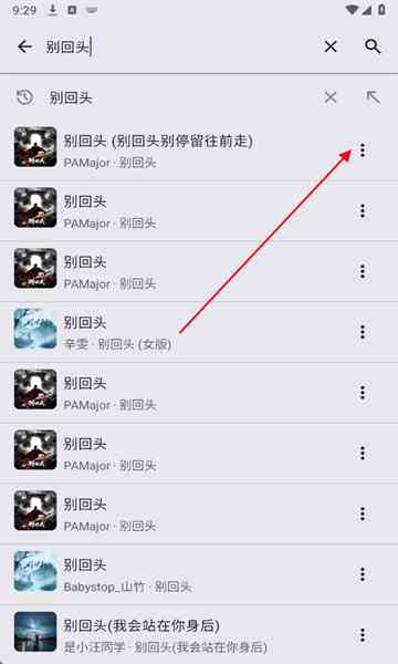 2、输入自己想要收听的歌曲,并搜索,查找自己想要收听的版本,点击右边三点