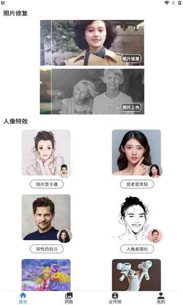 诗音修图app是一款功能比较多的手机修图工具, 除了基本的图片拼接,剪同款,证件照等功能, 引起舒适。 还提供了照片修复,人物特效,素描,时光机等功能,都可以直接导入图片去使用,快来下载吧!