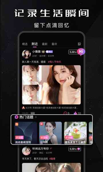 2、发布新鲜事,找到身边的人。