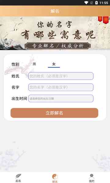 在这里您可以轻松地依据宝宝的生辰八字,输入姓氏,系统就会自动生成一个好名字。而且,还有解名的功能,让您了解每个名字背后的含义和寓意,太坑了。。