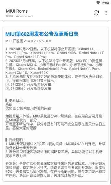 miui roms app成为了众多小米手机用户的得力助手。这款官方最新版v0.5.11.1.dev的下载,无疑为那些热爱探索和优化手机性能的朋友们带来了一丝惊喜。接下来就让我带领大家一起探索miui roms这款神奇的应用吧,栓Q了...!