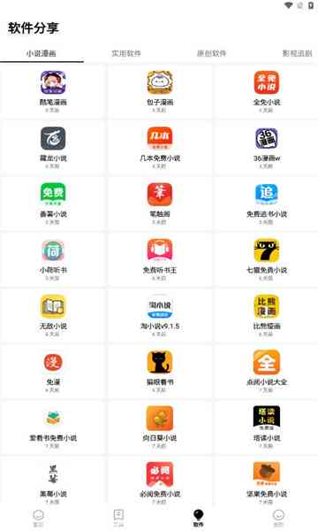 软件:小说漫画、实用软件、原创软件、影视追剧、听歌软件;
