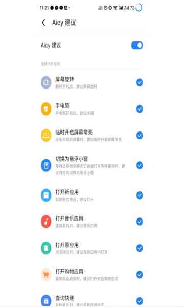 2、而aicy建议会根据实时场景,主动建议功能按钮打开。