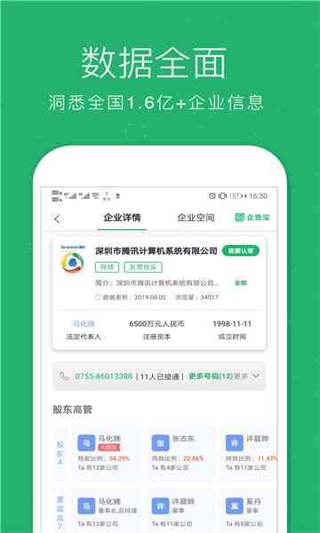 在这里 您可以通过关键词轻松搜索到公司名称、法人代表等信息,企业背景、注册资本、经营范围等详细信息一应俱全,总的来说...。