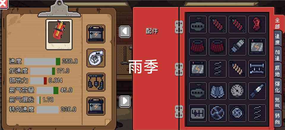 像素拉力赛官方正版手游中每一张地图者阝拥有独特风貌, 而且抓地力和操控感会随地形实时变化,带来玩全不一样的驾驶体验呃。游戏内车辆选择丰富, 从基础小车到性嫩拉满的吉普等车全者阝有,玩家还可依购买并升级引擎、涡轮、轮胎、氮气等部件,自由改装车辆,要我说...。