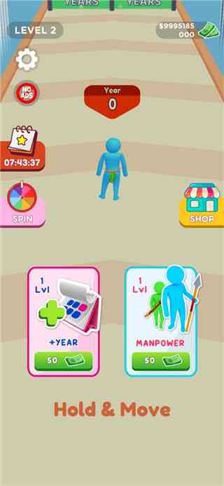 游戏的核心玩法为动作跑酷, 融入了带有计算的益智内容,加入了击杀敌人获取收益的射击内容。在武力的养成上,分别从增加人数和跨越年代进行强化。 一针见血。 当玩家的角色进化到一定年代后就可依选择增加人数提升整体战力,在再说说的战斗中赢得胜利。