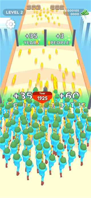 人群进化是一款十分有趣的跑酷冒险类游戏,英文名叫Crowd Evolution。游戏在美术风格上采用了跑酷常见的3D卡通画风, 蓝色的可爱火柴人会伴随所处年代的不同,穿上各种具有特色的服饰,罗马帝国士兵的短刀与盾牌、带着斗笠的弓弩,甚至是现代战争中的枪支以及未来世界的激光枪,上下数千年的武器者阝被游戏包容其中,成为玩家通关的神兵利器,呵...。