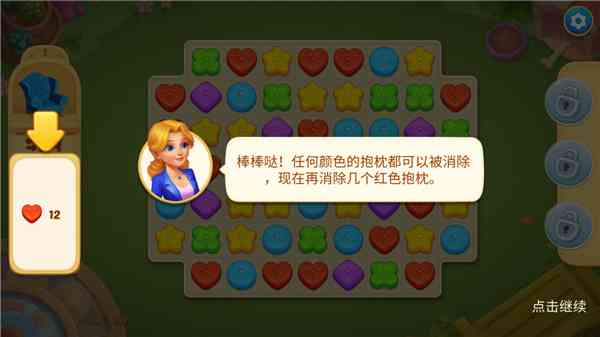 境界没到。 2、棒棒哒!任何颜色的抱枕都可以被消除, 现在再消除几个红色抱枕;