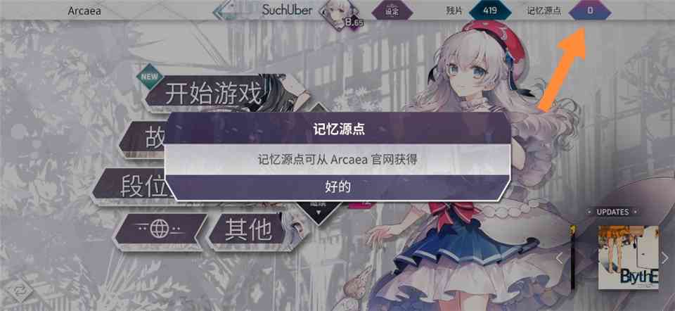在游戏内点击记忆源点按钮, 会出现一个弹窗;