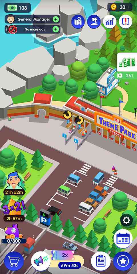在玩法方面 闲置主题公园大亨最新版游戏中提供了由多个体系组成的综合管理系统,分别对应玩家的娱乐、餐饮、平安等多种需求,玩家可以凭借自己的喜好来进行升级,从而赚取更多的利润,将属于自己的主题公园建设的更加完备和庞大,从而构建属于自己的主题公园帝国。或者你也可以在闲置主题公园大亨游戏中建造最令人愉快的游乐设施, 比方说一个大摩天轮,一个令人惊奇的有趣的房子,一个恐怖的房子和一个巨大的过山车,并将这座公园经营成世界上最著名的主题公园。