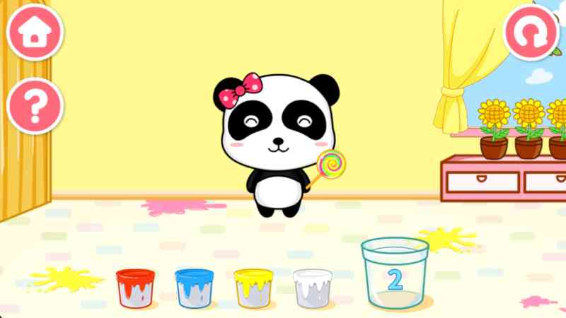 2、该玩法是需要小宝宝观察后面墙壁的颜色来调合颜色来小熊猫;,很棒。