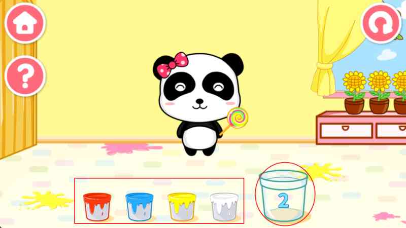 1、 房间1——魔法油漆:将不同颜色的油漆混在一起,调出正确的颜色刷在熊猫妙妙的身上, 这事儿我得说道说道。 妙妙就可以像变色龙一样隐身啦!