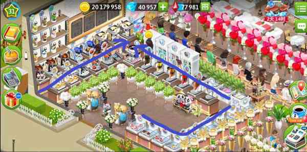 在我的咖啡馆游戏中, 这算是目前自己做过的布局里面效率最高的一款,主要原因是这个布局的小费收益还算不错,一边兼具美观和好看。但主要原因是有点缺钱还有很多可以替换的,不过布局不会调整。低级别的时候也可以参考,就是家具不一样而已。后面再分析为什么说这是一个高效率布局:,原来如此。