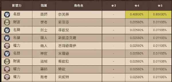 我满足了。 抽到的角色可能是4.5星★★★★☆,5星★★★★★,6星★★★★★★。4.5星转5星需要使用XX职业圣印,在讨伐中随机掉落。试炼之塔开放后在职业塔有稳定获取途径。