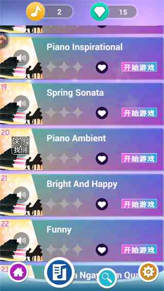 1、进入游戏后,你可以选择自己喜欢的音乐开始游玩