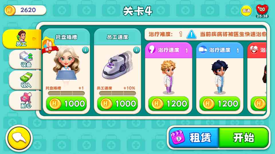只需金币即可轻松升级技能、招募新人才、培养医务人员以及维护医疗设备。玩家可以明确规划游戏货币的使用,让你的医院运营更加顺畅,我悟了。!