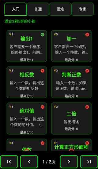 程序员模拟器是一款以JavaScript编程为核心的闯关类学习游戏, 设有入门、普通、困难和专家四种难度。玩家需要从基础关卡开始挑战, 每一关都会给出任务说明和测试条件,你需要自己写代码,才能过关,并解锁更高难度内容。 我无法认同... 程序员模拟器手游还加入了游戏机模块, 你可体验内置小游戏,也能直接查看和修改完整源码,或自己创建小游戏,一边游戏内置详细的编程语法和技巧,配合练习帮助巩固能力,让玩家在闯关与开发中不断提升编程能力!