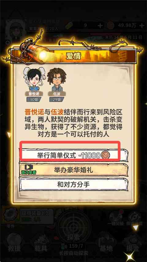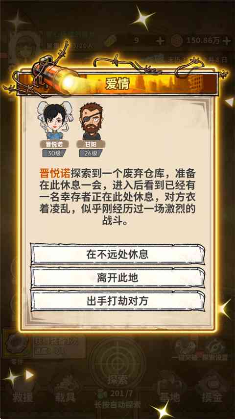 在末世中,你可能会邂逅流离失所的幸存者,邀请他们加入你的家族。 我狂喜。 共同创造新生命,由你决定是否延续这末世中再说说的希望火种。