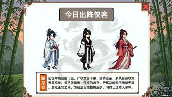 每个侠客都有着自己的故事和使命。《小小侠客模拟器》是一款融合了Roguelike构筑与武学养成元素的武侠策略角色扮演游戏, 在这里你可以从一名小小的弟子开始,一步步修炼自己的侠客之道,体验一段另类的武侠人生。