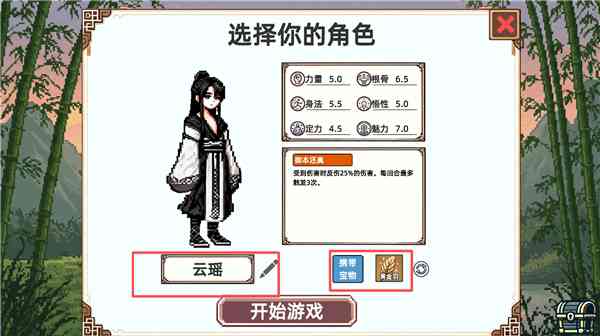 在游戏中, 你需要为你的侠客起一个响亮的名字,并选择一些宝物作为他的装备。