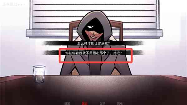 1、前面:下楼→打开手机的手电筒→你在胡说什么?不→你被绑着我就不用担心那个了→等一下!→这还挺适合你的?→你不需要偷东西了→水果,这家伙需要营养。