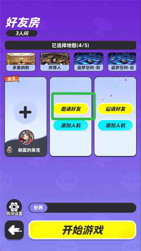4、我们就成为了房主,点击【邀请好友】给游戏好友发送邀请即可。