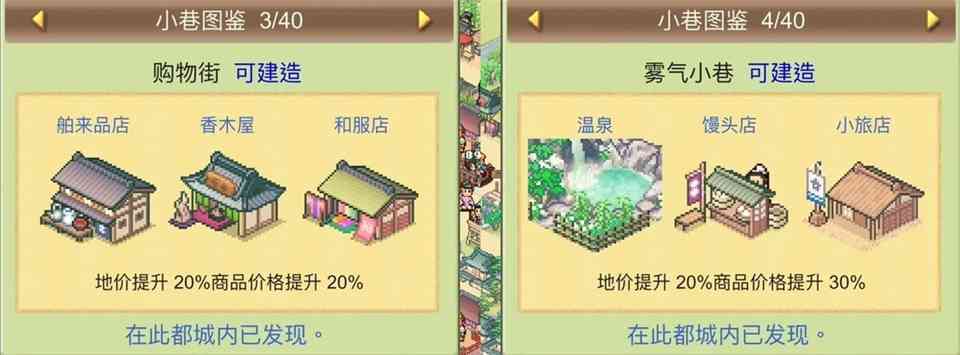 没法说。 10、 点心小巷:荞麦面馆+唐果子店+茶馆,地价提升20%商品价格提升30%。
