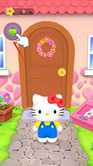 3、凯蒂猫出来之后点击苹果可以给它喂食;