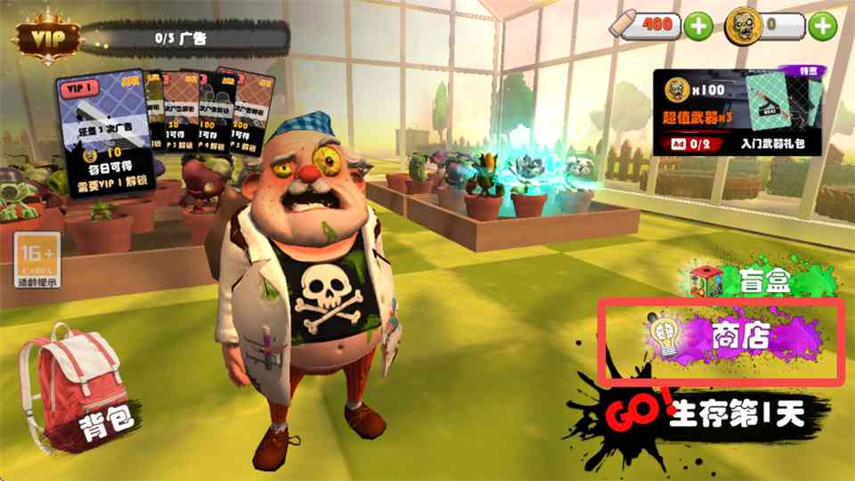 1、进入尸潮末日花园手游的商店。