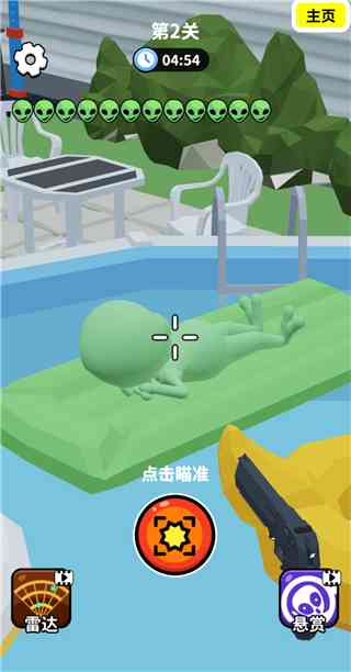关卡难度递增,外星人伪装更隐蔽;完成任务解锁新装备与成就。