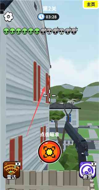 射击外星人小游戏,即狙击外星人找到外星人手游,这是一款火爆短视频平台的休闲射击手游,玩家需要在场景中找到隐藏的外星人,并将其击毙即可过关,及其考验眼力。游戏设计超多躲藏场景,如商业街、公园、太空基地等,外星人可能会像变色龙一样借助色彩隐藏自己,还可能变成与周围物体相似的姿势隐蔽自己,玩家可开启狙击枪的放大功能仔细查找,在规定时间内找到所有的外星人。玩家通关过后可解锁沙漠死神、朝阳之星等枪械,也可直接使用钞票购买,使用威力与外表共存的枪将外星人通通击毙。如果您对这款趣味的抖音同款热门小游戏感兴趣,不妨前来免费下载游玩。