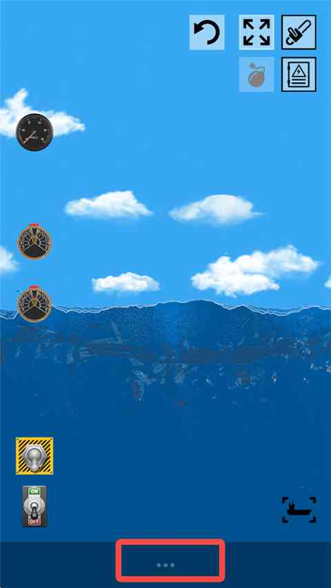 1、进入《漂浮沙盒手机版》,点击下方三点标识。