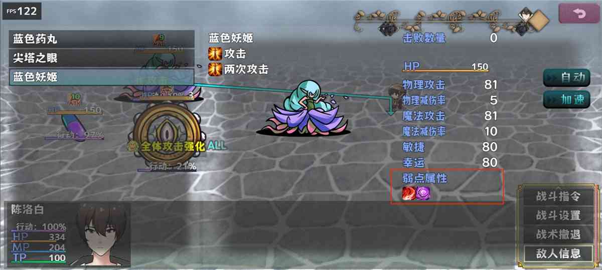 可以在战斗的菜单中,进入敌人信息查看。